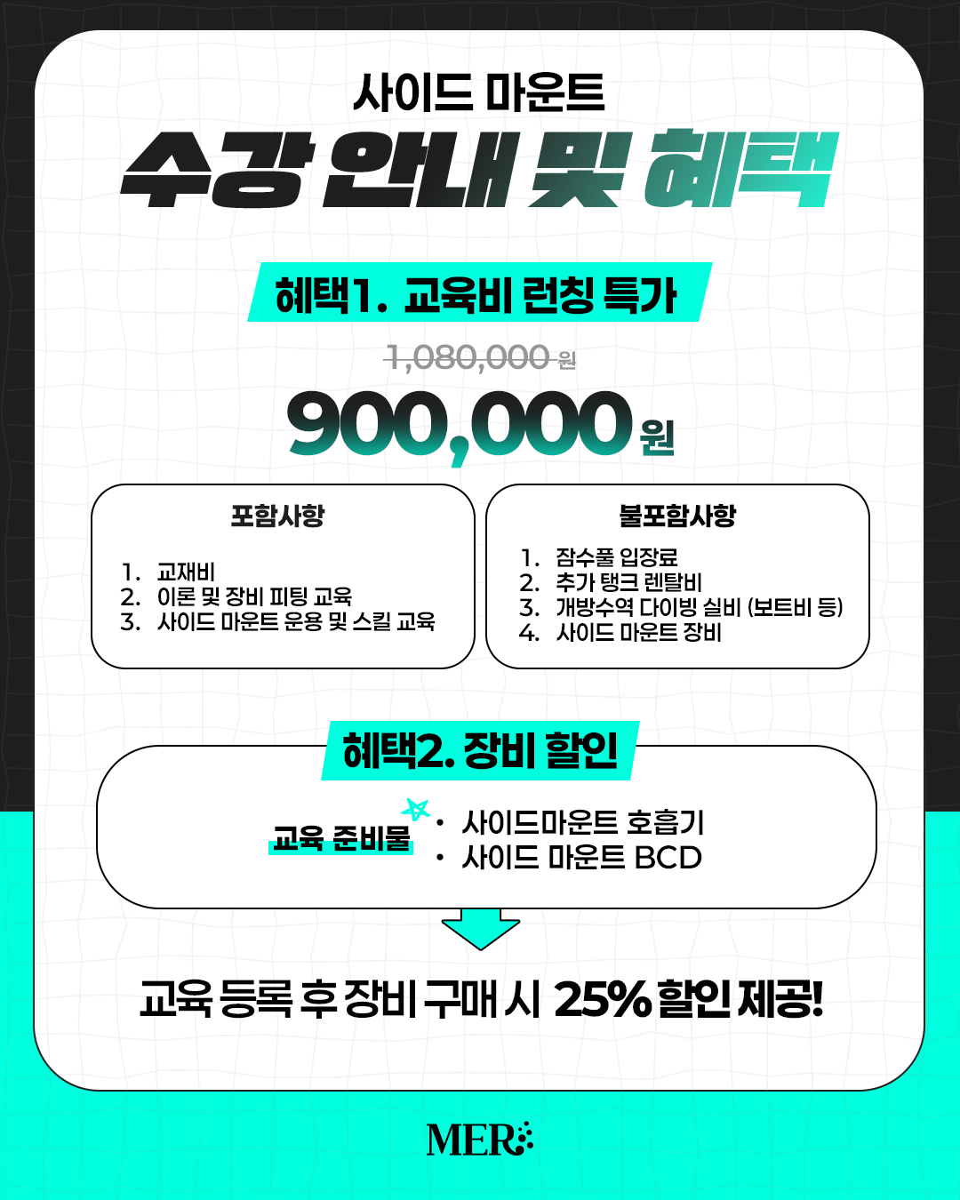 ▪사이드 마운트 교육과정 등록 시, 장비 25% 할인 구매 가능