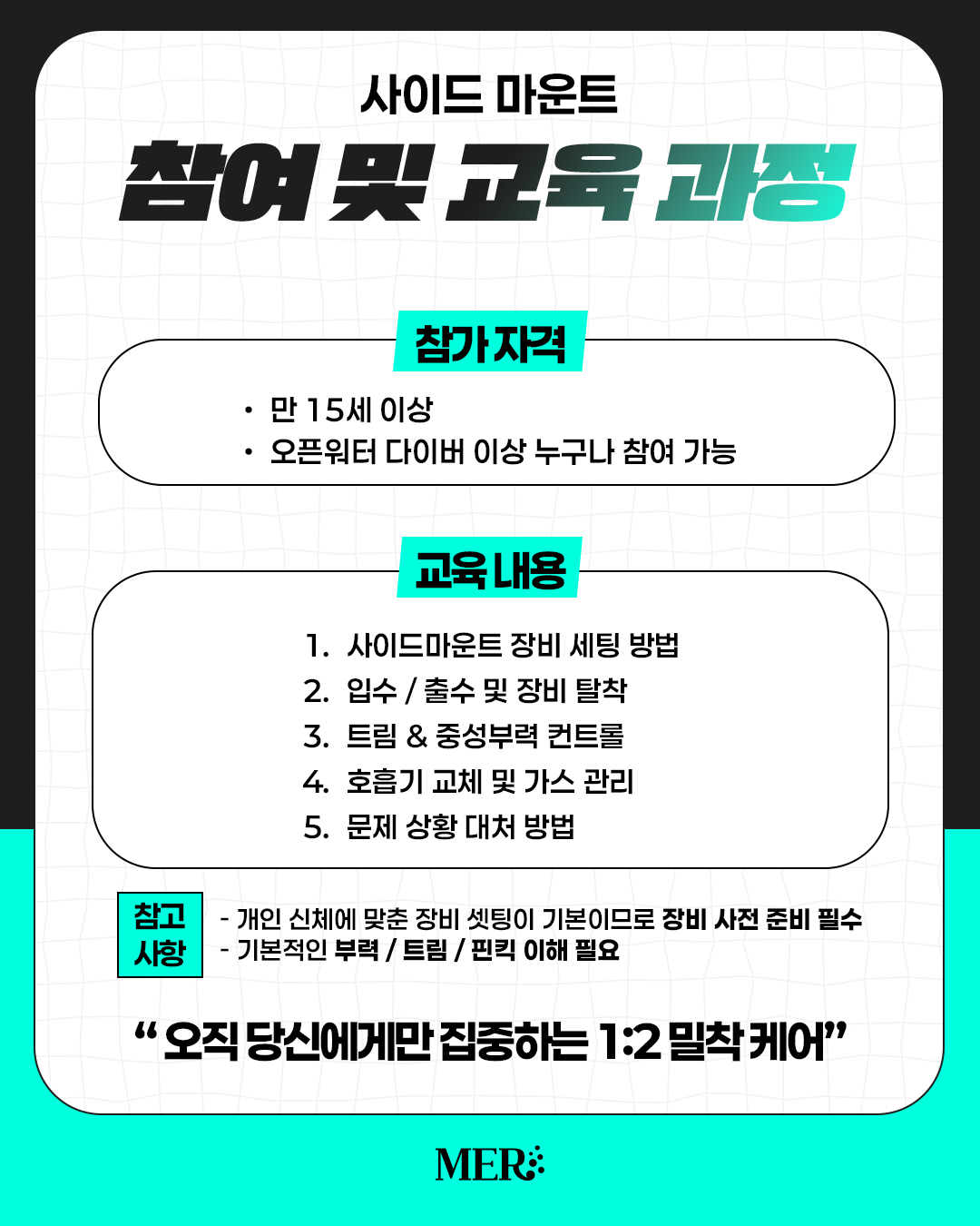 ▪사이드 마운트 교육과정 등록 시, 장비 25% 할인 구매 가능